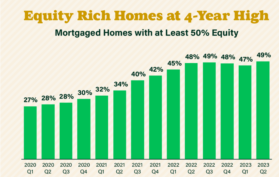 Almost half of homeowners are equity rich because they have at least 50% equity in their homes. If you’ve been in your home for a while, you might have gained a considerable amount of equity, too.